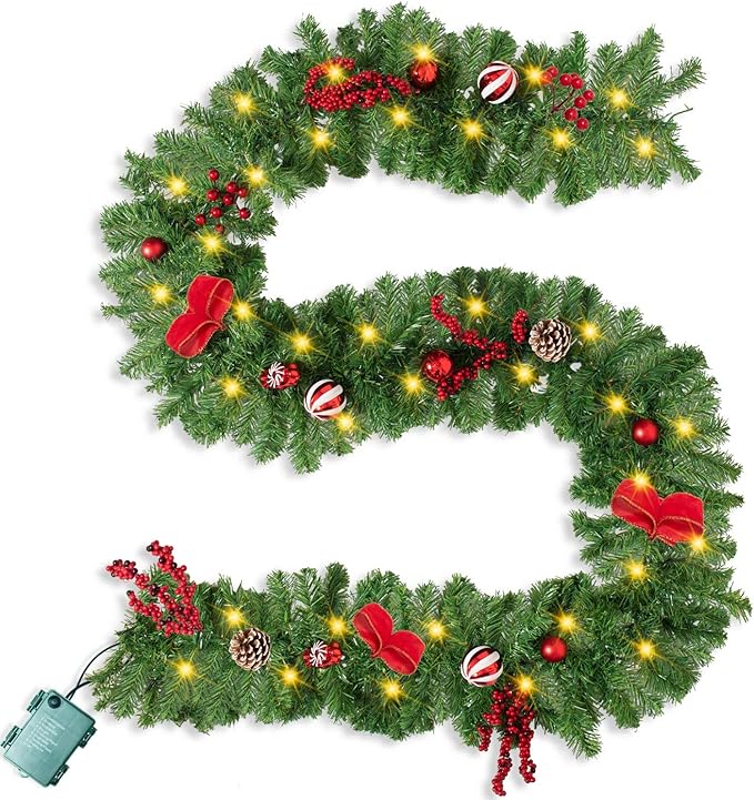 Brighten up your holiday décor with Rocinha’s 9-Foot Lighted Christmas Garland. Pre-lit with warm white lights, this lush, realistic garland is perfect for mantels, staircases, or doorways. Featuring festive greenery and durable construction, it creates a cozy, holiday ambiance while adding a touch of elegance to any space.